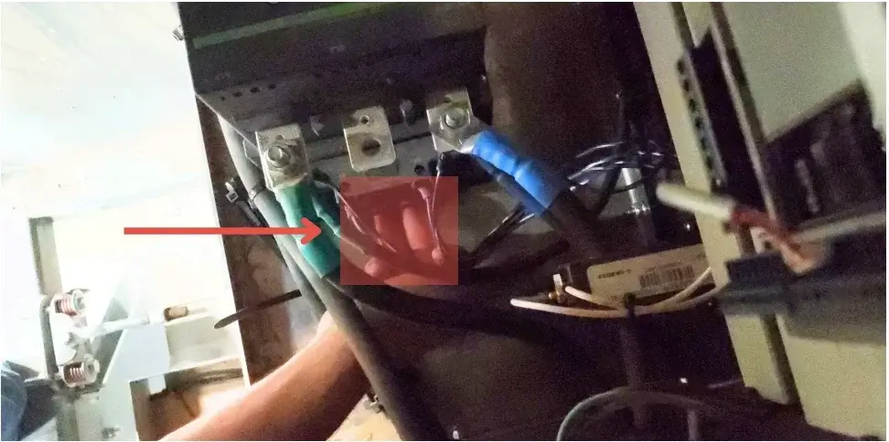 6. Alcanzando entre los cables negros grandes del lado derecho