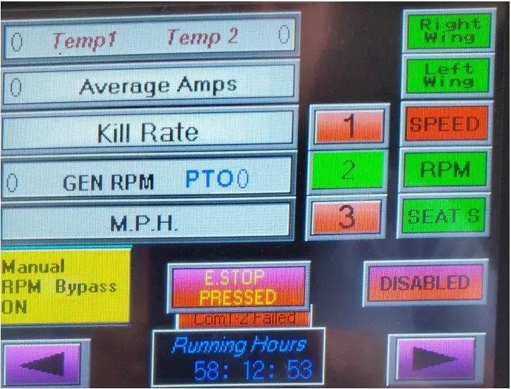 - PTO spinning at 1000-1100 PTO RPMs (verify